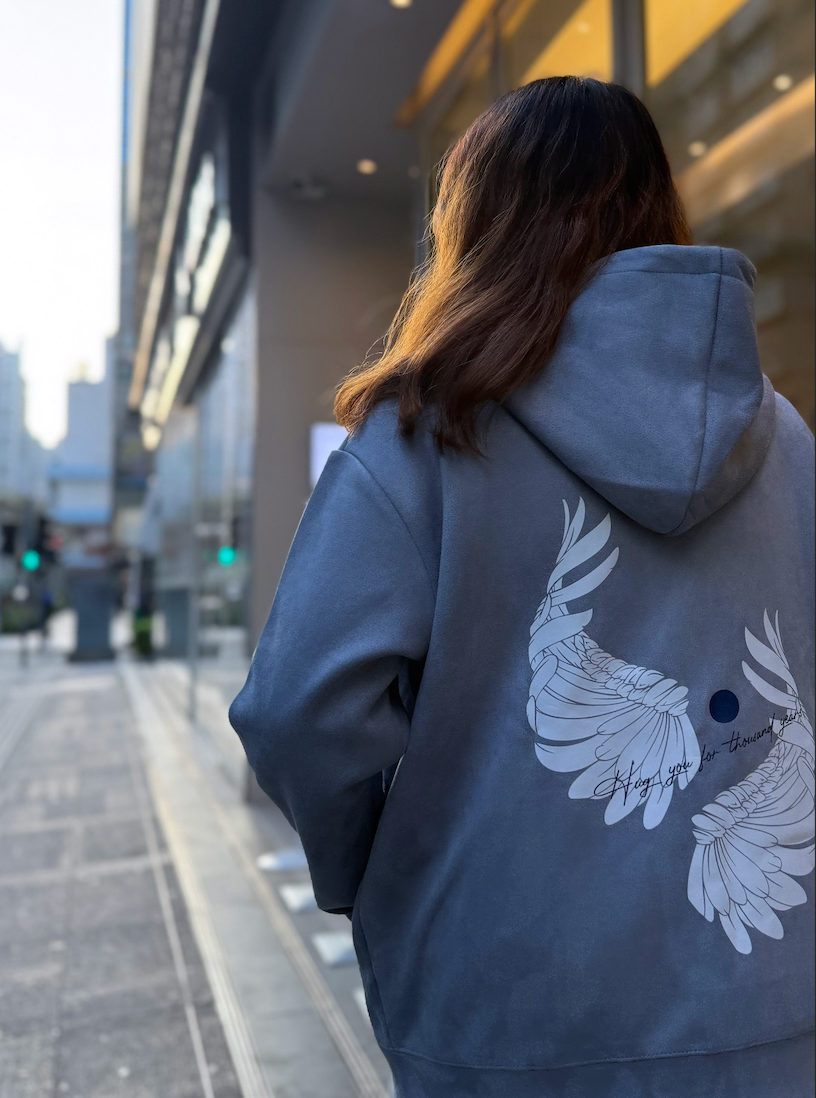 延續「日系列 4.0」的圖案,我在圖案裡多畫了一顆藍色圓點——我們品牌的標誌,也是地球。地球是孕育希望的地方;即使人類常把惡舉向星空,仍有無數人把良善摺成船,揚起帆闖進世界的海。願我們別熄滅內心的螢火,別往寬闊卻無光的地方走去。